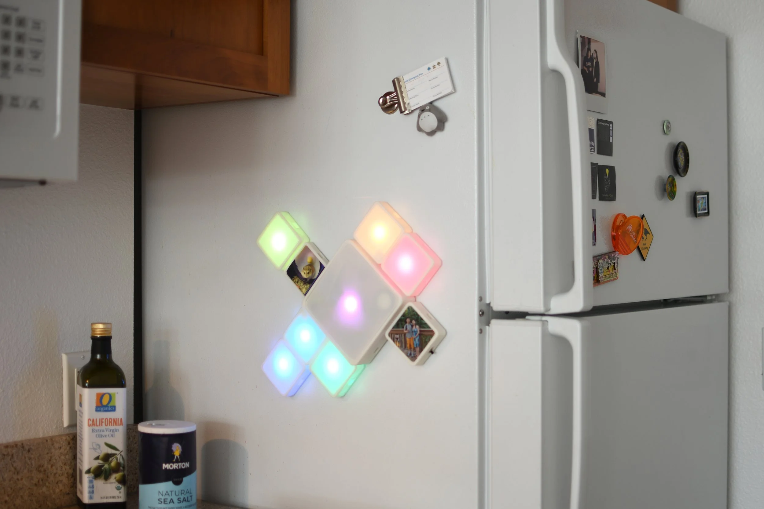 We explored several modular shapes before finalizing on square tiles. We found that edges of certain shapes either informed or confused users about how to attach modules to each other. The final design has one edge with a portion that sticks out for connecting to other tiles. All other edges have sockets that serve as attachment points.