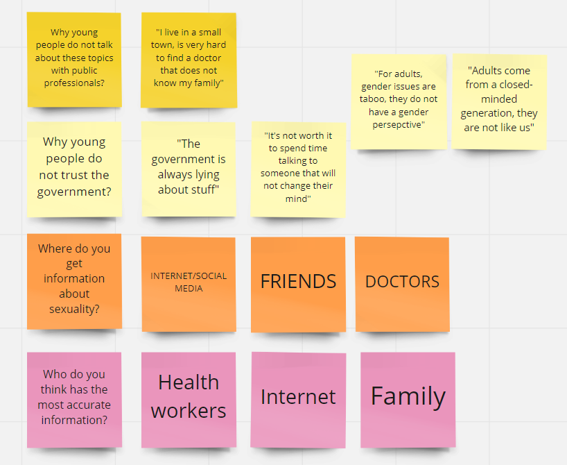 We interviewed young people to understand better the problem. The team got insights from workshops we did with them about these topics, and we also did a National Youth Study across the country.