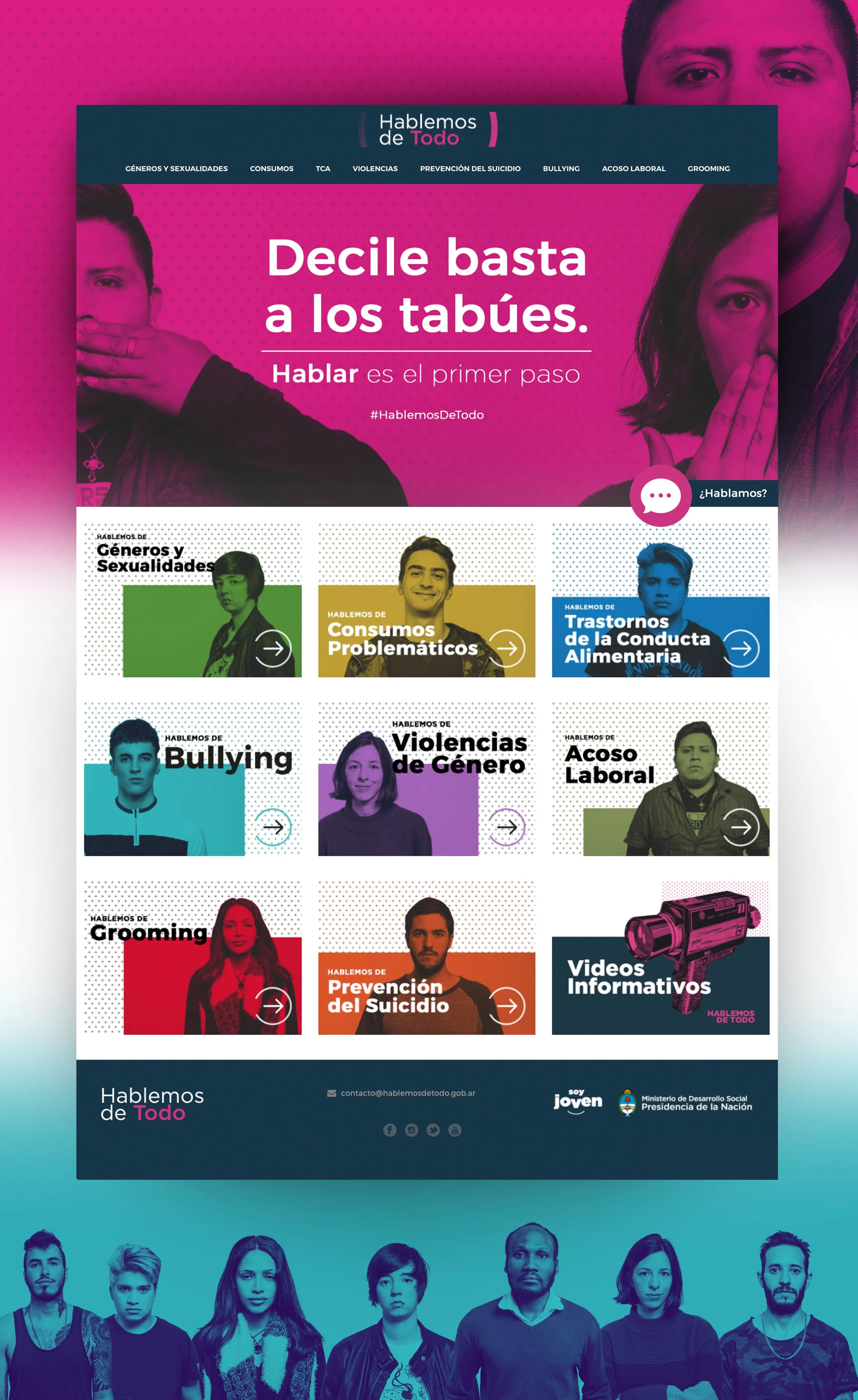 Let’s Talk About Everything is a program from the Argentine Government aimed to inform and create awareness among young people about taboo topics, such as sexuality, gender violence, bullying, problematic consumption, diversity, among others.